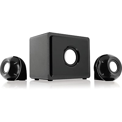 Number of speakers: 3 (left, right, and subwoofer) 2.1 speaker configuration Controls: Power, volume, bass